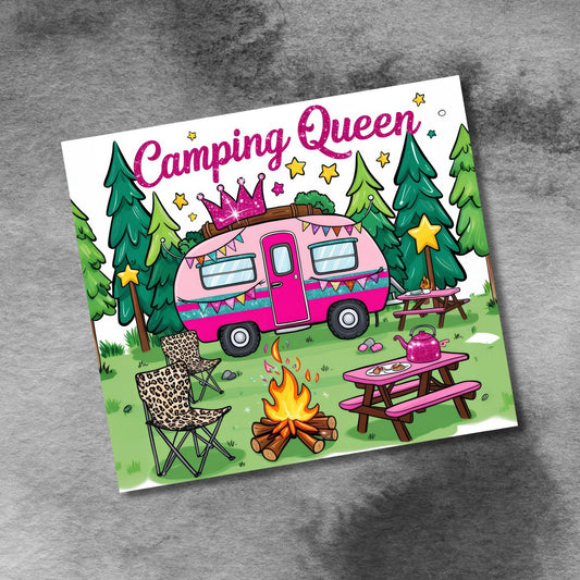 Camping Queen Tumbler Wrap, 20 oz Camper Seamless Sublimation Tumbler Design, Outdoor Camping Lover, Camper Van Digital Design