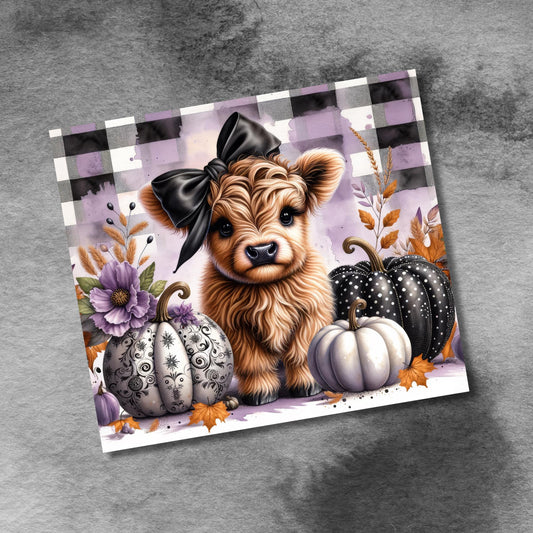 Cute Highland Cow Fall Pumpkins 20 oz Tumbler Wrap Fall Boho Flowers 20oz Skinny Sublimation Tumbler Design, Cow Lover Tumbler Seamless