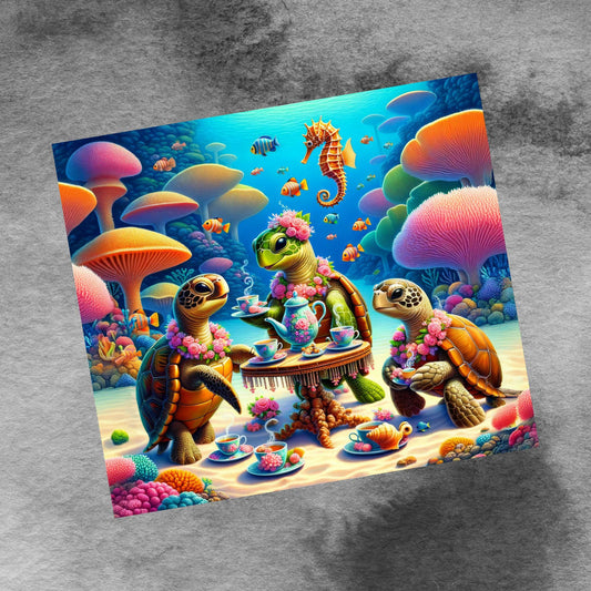 Cute Sea Turtle Ocean Tea Party 20oz Skinny Tumbler Designs, Seamless Coral Starfish 20 oz Tumbler Wrap Template, PNG Digital Download