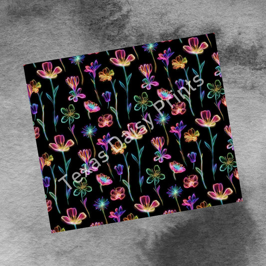Spring Flowers in Neon , 20oz Tumbler Wrap Skinny PNG Spring Flowers Sublimation Designs, Flower Tumbler Wrap, Digital Download
