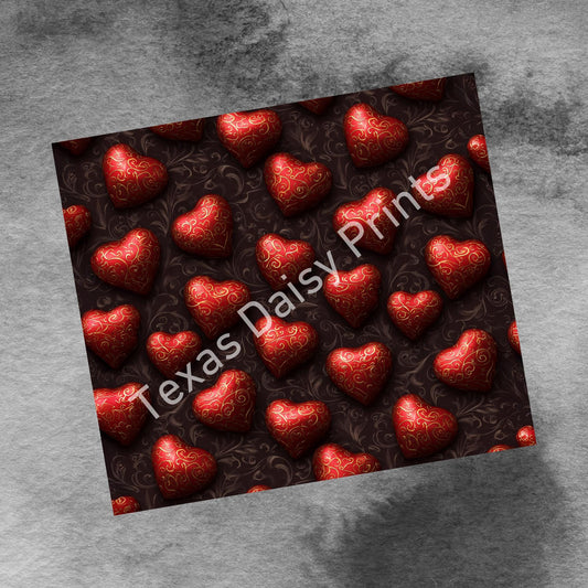 3D Red Hearts in Chocolate Filigree, 20oz Skinny Tumbler, 2 Versions Valentines Seamless Sublimation Design Templates, PNG Digital Download