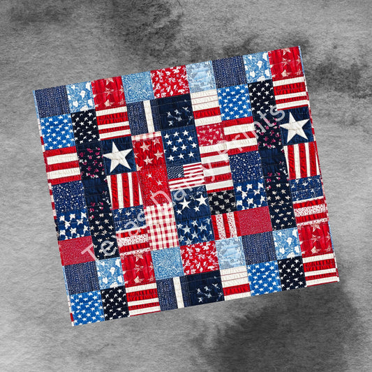 Quilting American Flag 20oz Skinny Tumbler, Forth of July Seamless Sublimation Design, Patchwork Straight PNG Digital Download