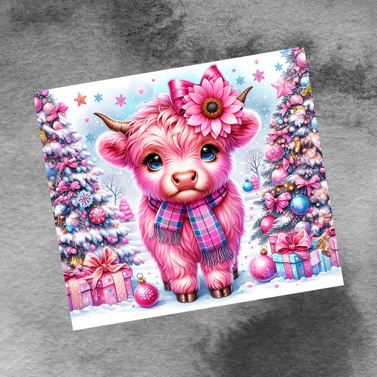 Cute Baby Highland Cow Christmas 20oz Tumbler Sublimation Design, Pink Glitter Straight PNG Digital Download Baby Cow with Sublimation