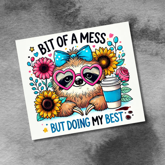 Cute Sloth 20oz Skinny Tumbler Wrap, Seamless Bit Of a Mess But Doing My Best Anxiety Sunflower Sublimation Design PNG
