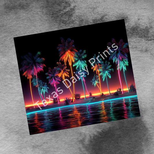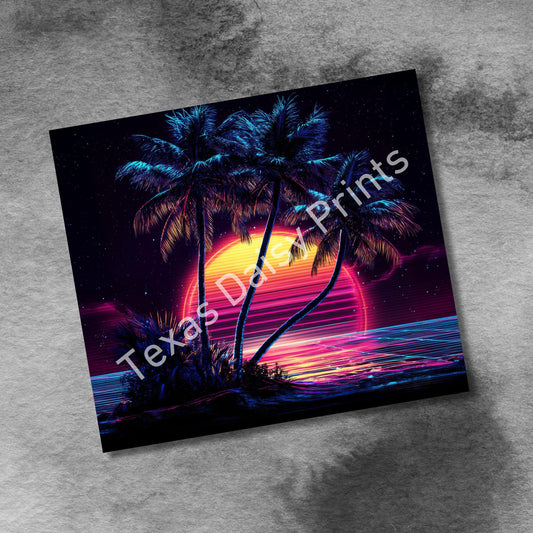 Beach Sunset 20oz Skinny Tumbler Sublimation Templates, Miami Neon Palm Trees Tropical Seamless Straight PNG Digital Download