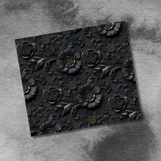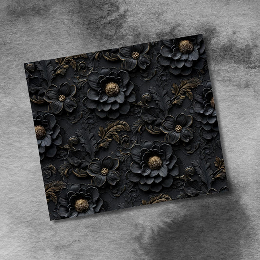 3D Gothic Black Gold Flowers 20oz Skinny Tumbler Wrap Png Tumbler Daisy Flowers Tumbler Wrap Png Seamless Sublimation Design