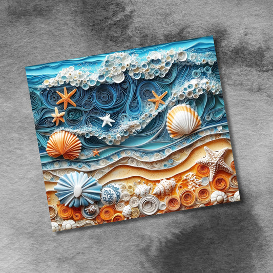 3D Ocean Seashells Beach 20 oz Skinny Tumbler, Seamless Tumbler Wrap, Instant Digital Download Sublimation Design