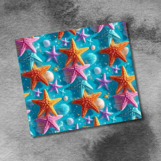 3D Starfish Tropical Summer 20oz Skinny Tumbler Wrap, Beach Ocean Tumbler Seamless Sublimation Design