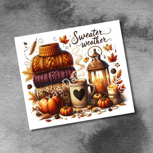 Sweater Weather Fall 20oz Skinny Tumbler, Latte Seamless Sublimation Design Templates, Tumbler Straight PNG Digital Download