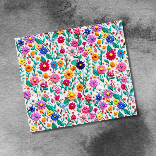 Spring Flowers Embroidery 20oz Skinny Tumbler Wrap, Wildflowers Seamless Tumbler Wrap, 20 Oz Tumbler Png Floral Sublimation Design