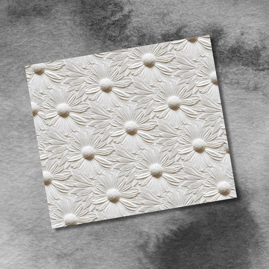 3D Spring Flowers White Daisy 20oz Skinny Tumbler Wrap, Seamless Embossed Spring Floral Sublimation Design