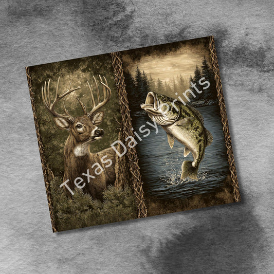 Fishing And Deer Camo Seamless Tumbler Wrap, 20oz Skinny Tumbler Sublimation, Hunting Season Straight Tumbler PNG Digital Download