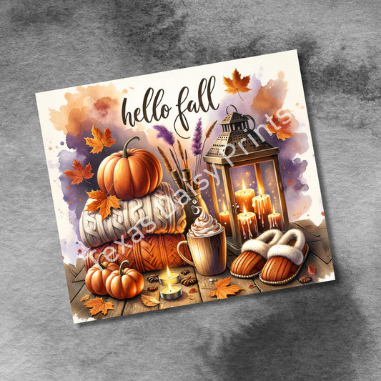 Hello Fall W 20oz Skinny Tumbler, Latte Pumpkins Seamless Sublimation Design Templates, Tumbler Straight PNG Digital Download