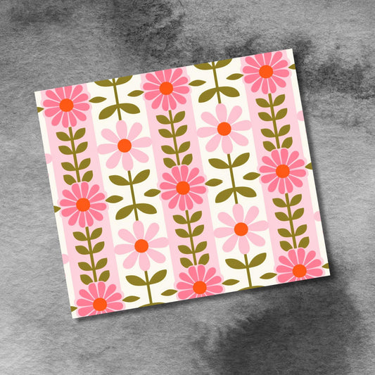 Pink Retro Flowers Garden 20oz Skinny Tumbler Sublimation Templates,Floral Stripe Digital Pattern Seamless Straight PNG Digital Download