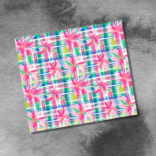 Spring Watercolor Flowers 20oz Skinny Tumbler Sublimation Design Seamless, Pink Blue Plaid With Flowers Straight PNG Digital Download