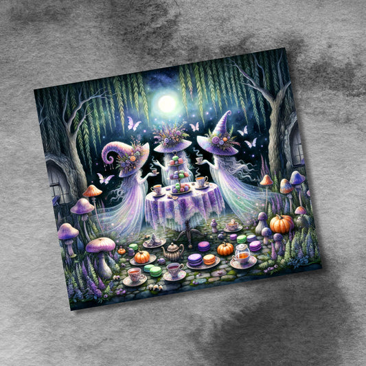 Halloween Witch Tea Party, 20oz Skinny Tumbler Sublimation Design, Spooky Tumbler Wrap, Witch's Halloween PNG, Digital Download