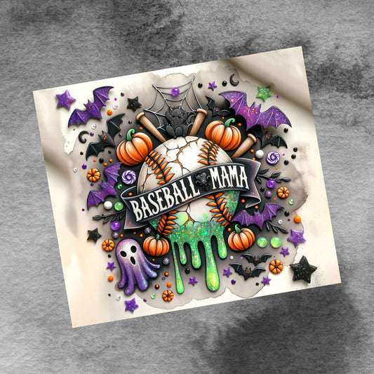 Spooky Baseball Mama 20oz Tumbler Wrap, Seamless Halloween Baseball Mom PNG Sublimation Templates,Sports Mom Tumbler Wrap