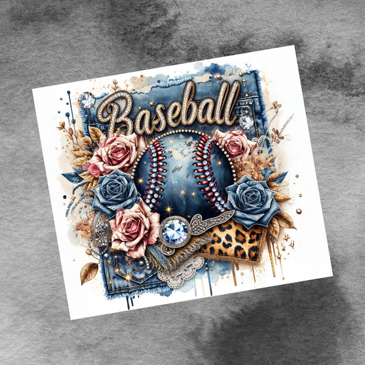 Denim Diamonds Glam Baseball 20oz Tumbler Wrap, Seamless, Floral Baseball PNG Sublimation Templates,Sports Tumbler Wrap