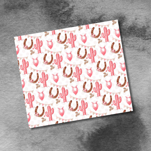 Cowgirl Cactus Horseshoes in Pink 20oz Skinny Tumbler Seamless Sublimation Design Templates,Straight PNG Digital Download