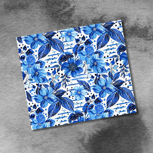 Spring Flowers 20oz Skinny Tumbler Wrap Sublimation Templates, Blue Flowers with Abstract Lines Seamless Straight PNG Digital Download