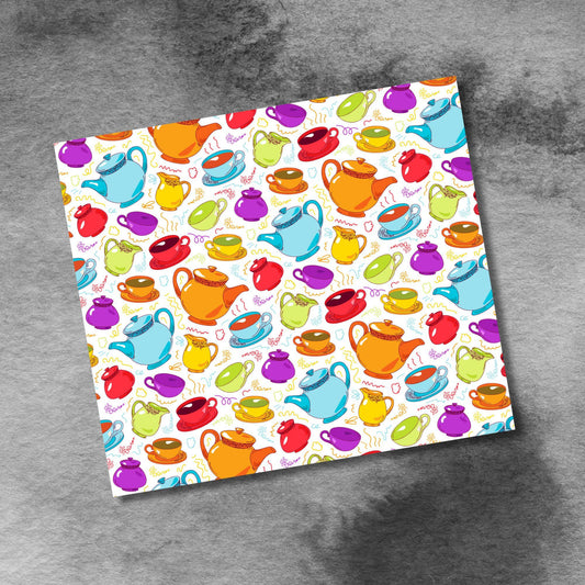Tea Cups and Tea Pots in Rainbow Colors 20oz Skinny Tumbler Seamless Sublimation Design Templates,Straight PNG Digital Download