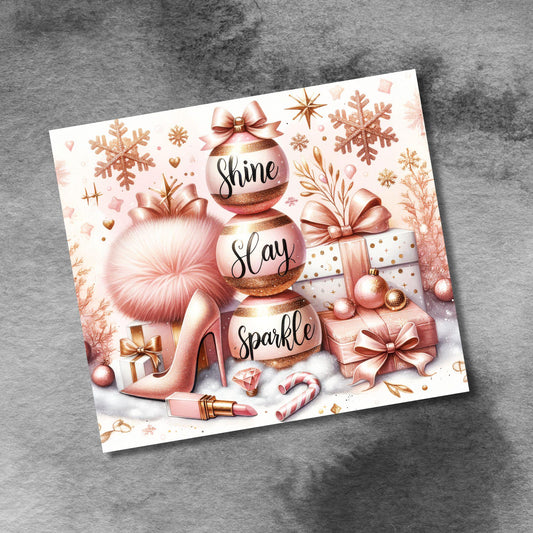 Christmas Glitter Ornaments 20oz Skinny Tumbler Wrap , Girly Shine Slay Sparkle Glitter Seamless 20oz Sublimation Wrap, Digital Download