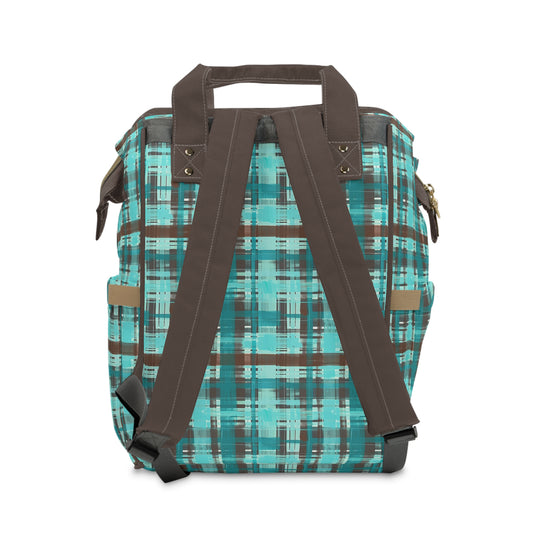 Bold Abstract Watercolor Plaid in Shades of Green and Brown Multifunctional Diaper Backpack