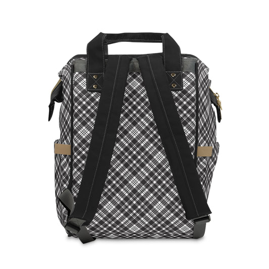 Chic Contrasting Black & Grey Argyle Plaid Pattern Multifunctional Diaper Backpack