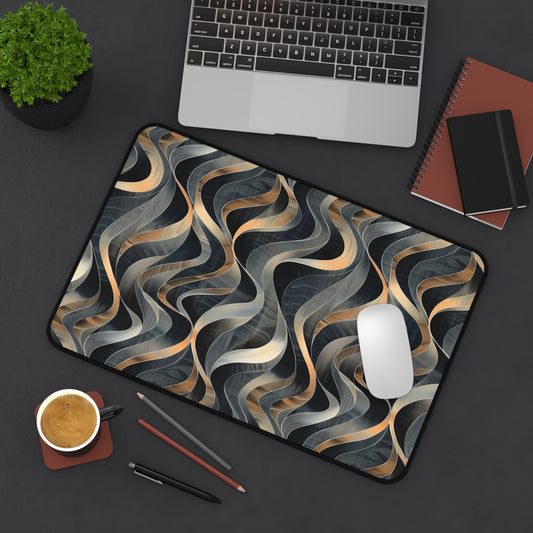 Artistic Fusion of Wavy Lines in a Palette of Silver, Gold, and Dark Hues Extended Gaming Mouse Pad Desk Mat - 3 Sizes