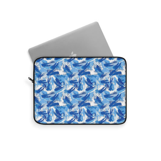 Bold Blue and White Abstract Brushstroke Pattern Laptop or Ipad Protective Sleeve 3 Sizes Available