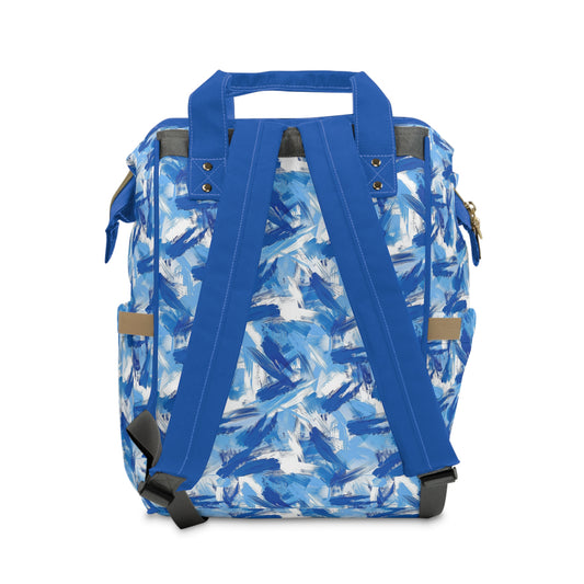 Bold Blue and White Abstract Brushstroke Pattern Multifunctional Diaper Backpack