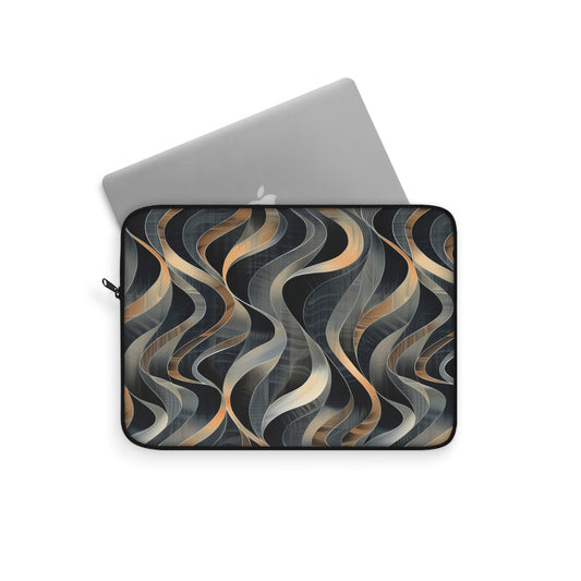 Artistic Fusion of Wavy Lines in a Palette of Silver, Gold, and Dark Hues Laptop or Ipad Protective Sleeve 3 Sizes Available