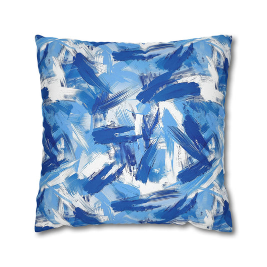 Bold Blue and White Abstract Brushstroke Pattern Spun Polyester Square Pillowcase 4 Sizes