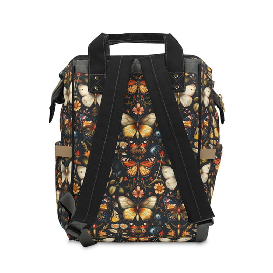 Enchanted Garden of Butterflies and Botanicals in Rich Autumn Hues on a Deep Night Background Multifunctional Diaper Backpack