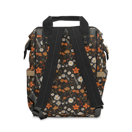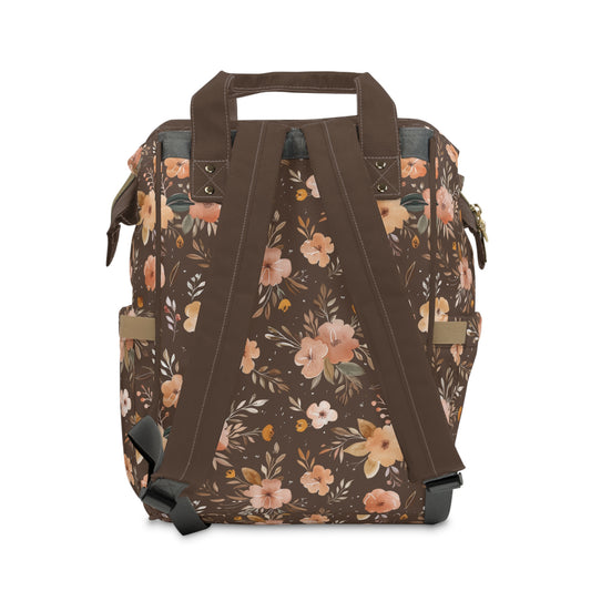 Autumn-Inspired Bohemian Floral Pattern Burnt Orange, Deep Brown and Creamy Beige Multifunctional Diaper Backpack