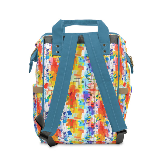 Colorful Chaos Abstract Expressionist Art with Layered Paint Stains in Vibrant Hues of Yellow, Orange, and Blue Multifunctional Diaper Backpack