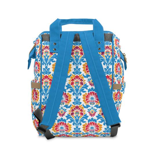 Bohemian Rapture of Floral Harmony in Lush Tangerine and Cerulean Multifunctional Diaper Backpack