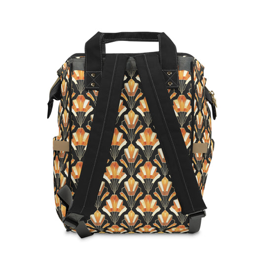 Art Deco Inspired Streamlined Geometric Florals in Orange and Black Multifunctional Diaper Backpack