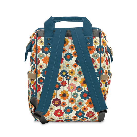 Blooming Joy Vibrant Retro Floral Pattern Multifunctional Diaper Backpack