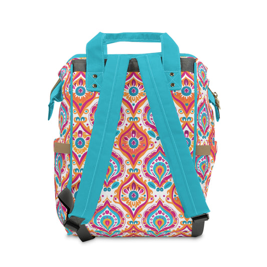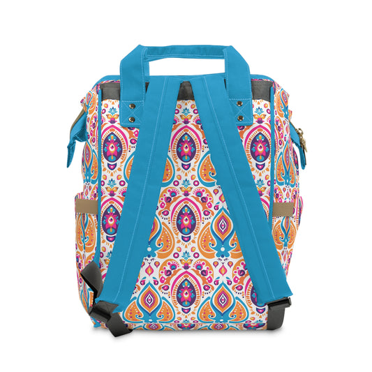 Bohemian Rhapsody Exquisite & Colorful Boho Pattern of Bold Hues of Blue, Pink, and Orange Multifunctional Diaper Backpack