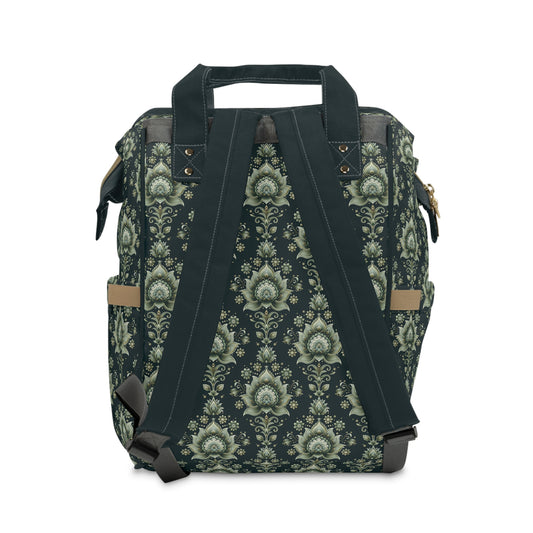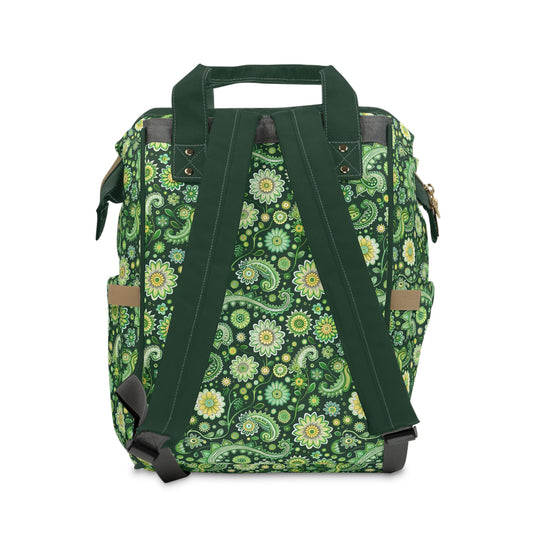 Emerald Oasis in Lush Paisley and Floral Mandala in Soothing Green Tones Multifunctional Diaper Backpack
