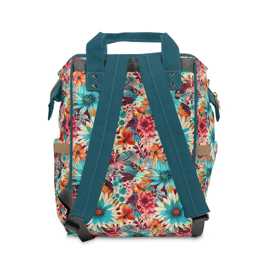 Kaleidoscope of Warm Tangerine, Lush Teal, and Lively Pink Blooms Multifunctional Diaper Backpack
