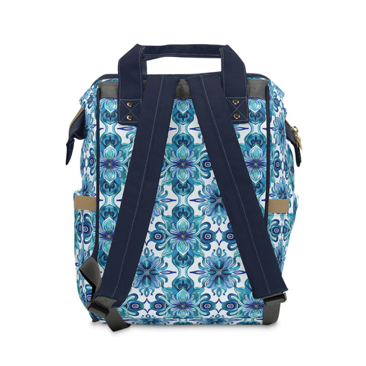 Blossom Symphony of Blue Teal Intricate Floral Pattern Multifunctional Diaper Backpack
