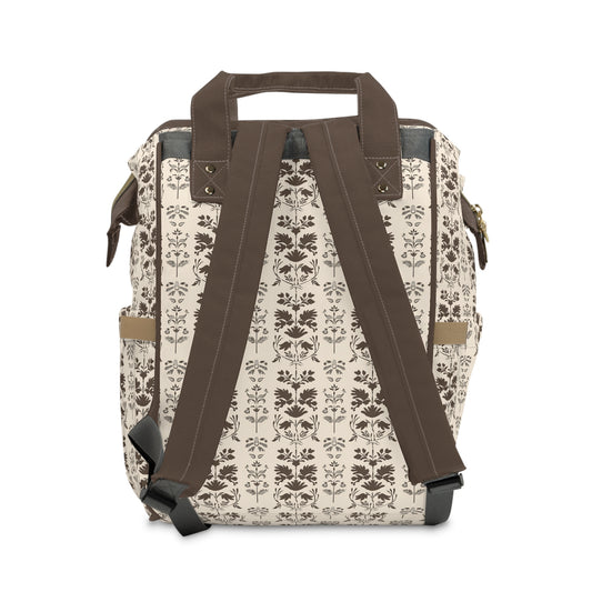 Early American Stencil-Inspired Beige and Brown Floral Pattern Multifunctional Diaper Backpack
