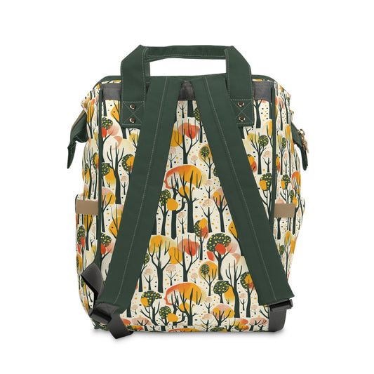Enchanted Forest of Yellow and Orange Trees on a Speckled Cream Background Multifunctional Diaper Backpack
