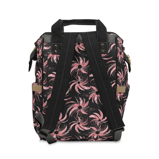 Stellar Blooms of Cosmic Pink on Midnight Black Design Multifunctional Diaper Backpack