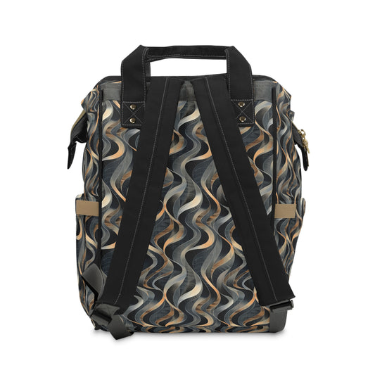Artistic Fusion of Wavy Lines in a Palette of Silver, Gold, and Dark Hues Multifunctional Diaper Backpack