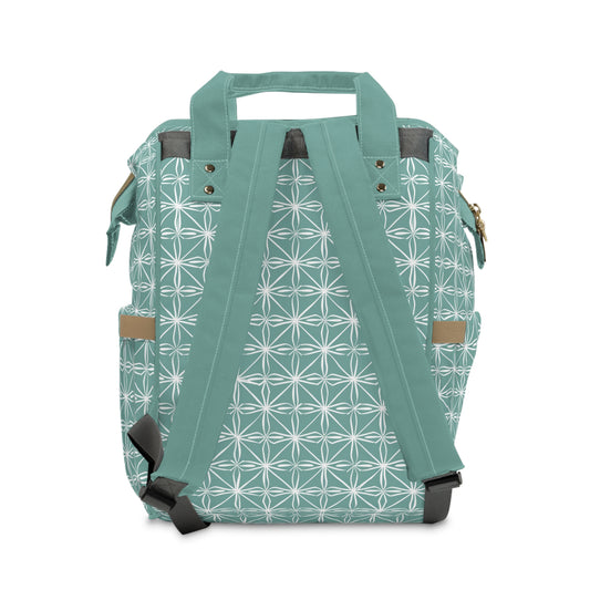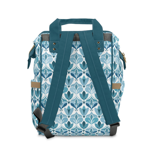 Elegant Floral Pattern in Shades of Aqua and Teal, Forming Graceful Botanical Motifs Multifunctional Diaper Backpack