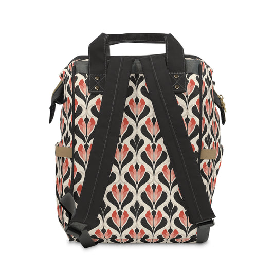 Art Deco Elegance Red Floral Motif on Cream Multifunctional Diaper Backpack