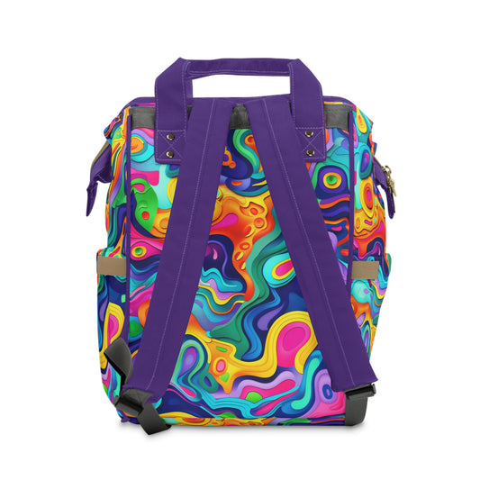 Vibrant Dreamscape of Psychedelic Paper Cut-Out Waves in Vivid Colors Multifunctional Diaper Backpack